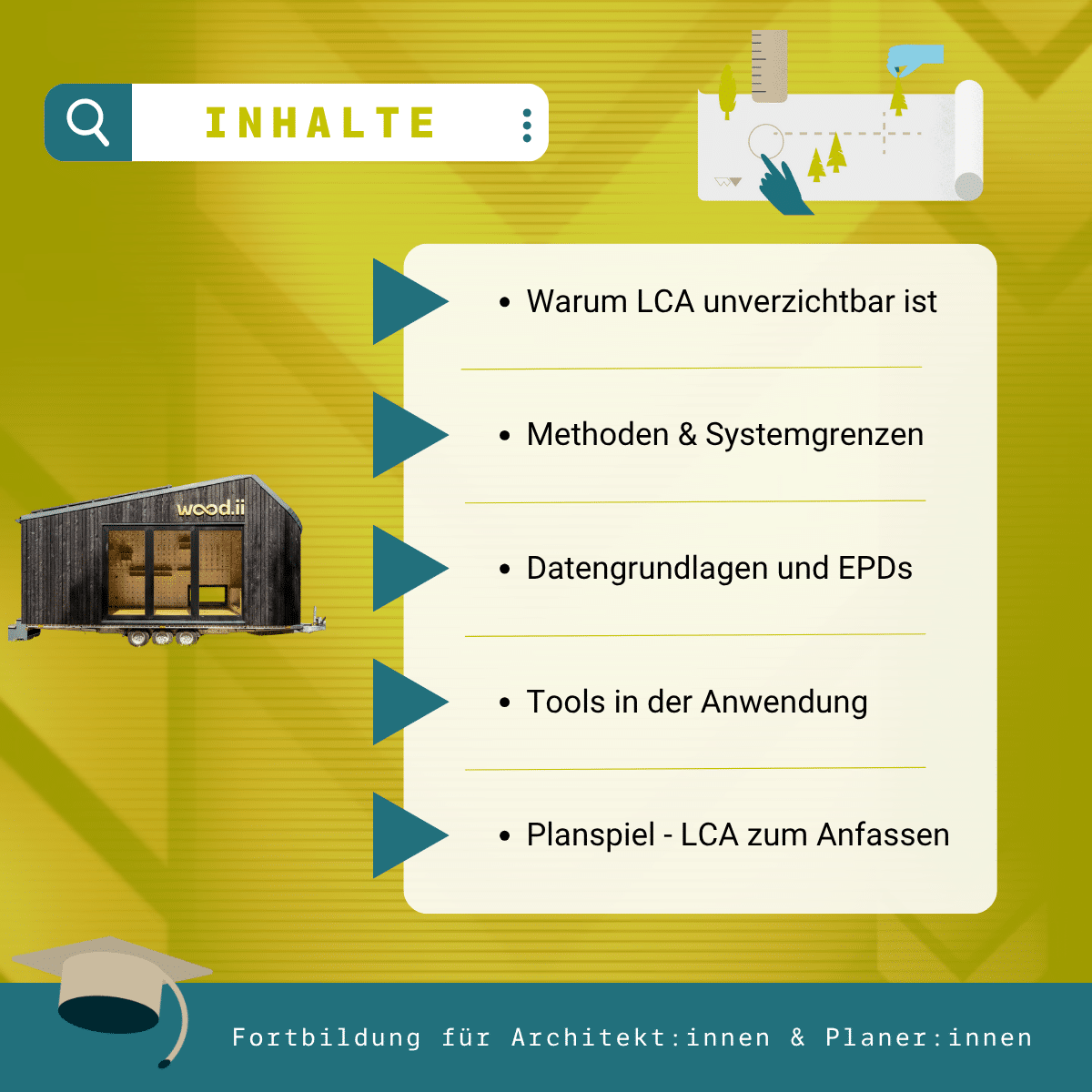 Vermittelt werden die Grundlagen der Lebenszyklusanalyse (LCA) im Bauwesen: von der schnellen Abschätzung bis zur detaillierten Bilanz. Die Teilnehmenden lernen, welche Datenquellen und Tools sie benötigen und wie sie Ergebnisse praxisnah interpretieren. Das Highlight ist ein analoges Planspiel, in dem die LCA Schritt für Schritt erfahrbar wird.