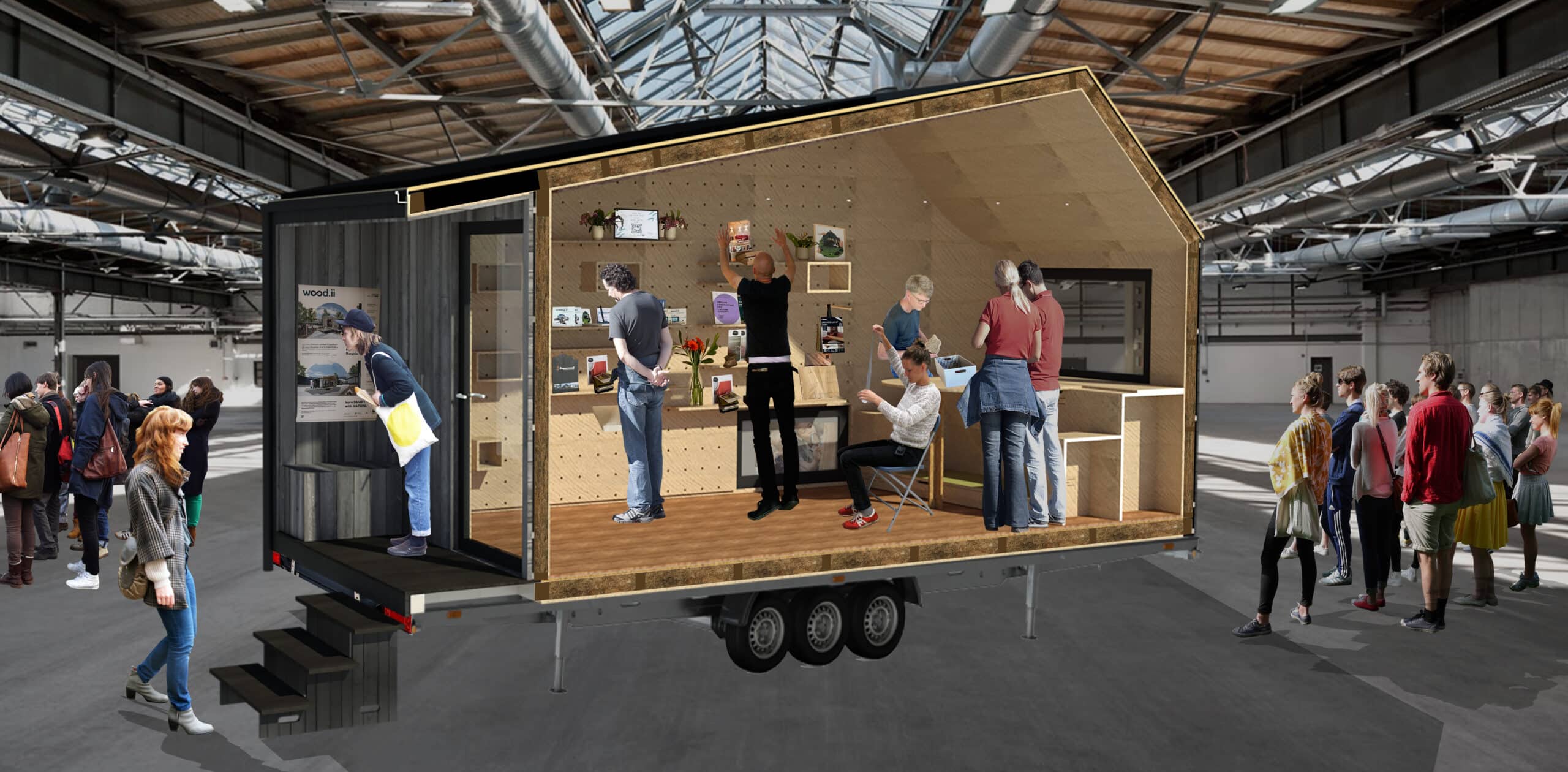 So entstand ein mobiler Lernraum, der nicht nur als zirkuläres Bauprojekt überzeugt, sondern als interaktive Bildungsplattform Menschen aller Altersgruppen – von Schüler*innen bis Fachleuten – dazu einlädt, regeneratives Bauen praktisch zu erleben und weiterzudenken.
